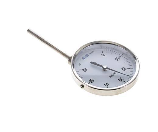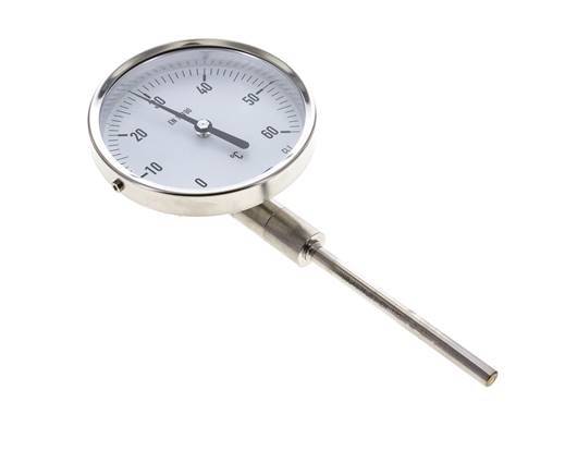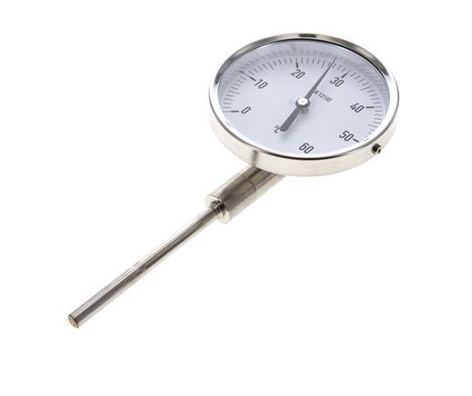 0 a +60°C Termómetro bimetálico de acero inoxidable Gabinete de 100mm Fondo de vástago