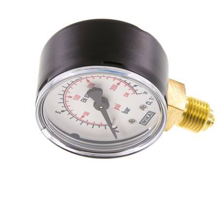 Manómetro MW01650SV tiene un punto de conexión situado debajo del manómetro y mide presión en el rango de 0 a 16 bar (0,.232 psi). La división de la escala es 0 - 0,5 y la precisión de la medición clase 1,6 (± 1,6 %). La carcasa del calibre de acero tiene un diámetro de 50 mm. El sistema de medición, el indicador y la conexión G 1/4 pulgadas están hechos de latón.