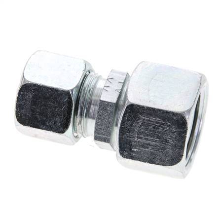 Esta conexión roscada recta de acero cincado está diseñada con orificios de conexión de anillo cortante y tubo giratorio. La conexión 1 es un anillo cortante de 12 mm con una tuerca de unión M20x1,5. La conexión 2 tiene una conexión de tubo giratorio de 16 mm. Dispone de una junta tórica y un cono de sellado para la estanqueidad. El material de la junta es NBR. La presión máxima es de 400 bar (5800 psi). El racor es adecuado para temperaturas de -35 a 100 °C (-31 a 212 °F). Se fabrica conforme a la norma DIN EN ISO 8434-1 (DIN 2353).