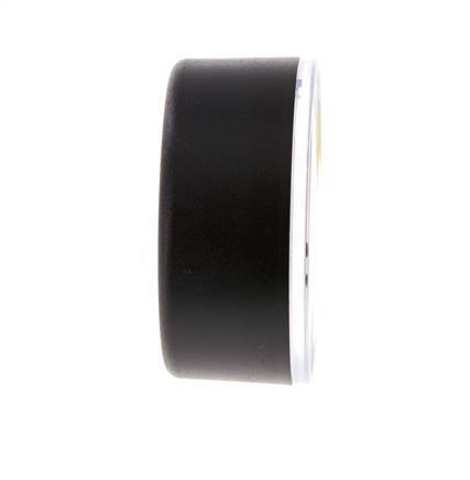 El manómetro MW-11563PV está diseñado para aplicaciones de vacío y mide presiones dentro del rango de -1 a 15 bar (-15..218 psi). El medidor tiene dos escalas de medición en barra (negro) con división de escala de 0,5 y en psi (rojo). La clase de precisión de medición es 2,5 (± 2,5 % de desviación máxima). El cuerpo del medidor está hecho de plástico, la conexión y el indicador están hechos de latón. Asegúrese de que su medio es compatible con latón. El punto de conexión para este manómetro se encuentra debajo del medidor. Como regla general, seleccione un presión que tenga una escala de clasificación de al menos un 25% superior a la presión máxima de funcionamiento.