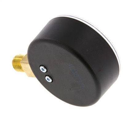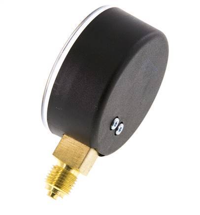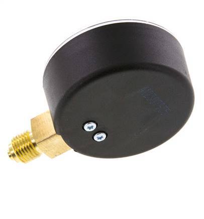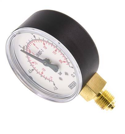 Manómetro MW-11P563PV tiene un punto de conexión situado debajo del manómetro y mide presión en el rango de -1 a 1,5 bar (-15..22 psi) (para vacío). La división de la escala es 0 - 0,1 y la precisión de la medición clase 2,5 (± 2,5 %). La carcasa de plástico tiene un diámetro de 63 mm. El sistema de medición, el indicador y la conexión G 1/4 pulgadas están hechos de latón.