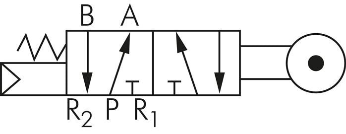 Utilice una válvula de 5/2 vías en aplicaciones que se mueven continuamente entre dos posiciones, como los cilindros de doble efecto que se extienden y retraen, donde no es necesario detener la presión del aire. La válvula neumática de rodillo detecta la ubicación de las piezas móviles de forma mecánica dentro de los sistemas de automatización de máquinas. La válvula se activa cuando una pieza móvil pasa por encima.