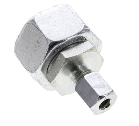 Esta conexión de rosca recta de acero galvanizado está diseñada con anillo de corte y puertos de conexión de tubo giratorio. La conexión 1 es un anillo de corte de 6 mm con una tuerca de unión M12x1,5. La conexión 2 tiene una conexión de tubo giratorio de 22 mm. Dispone de una junta tórica y un cono de sellado para la estanqueidad. El material de la junta es NBR. La presión máxima es de 160 bar (2320 psi). El racor es adecuado para temperaturas de -35 a 100 °C (-31 a 212 °F). Se fabrica de acuerdo con la norma DIN EN ISO 8434-1 (DIN 2353).
