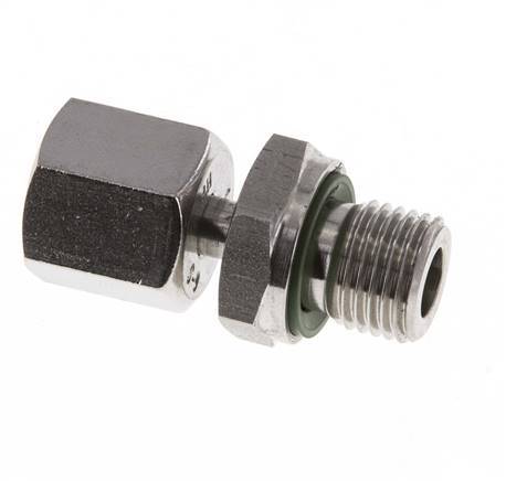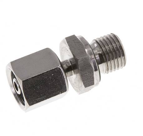 Esta conexión roscada recta de acero inoxidable 1.4571 está diseñada con un puerto de conexión de tubo giratorio y una conexión roscada. Tiene una conexión ajustable. La conexión 1 tiene una conexión de tubo giratorio de 6 mm. La conexión 2 tiene rosca macho G 1/4 de pulgada. El material de la junta es FKM. La presión máxima es de 630 bar (9135 psi). El racor es adecuado para temperaturas de -20 a 200 °C (-4 a 392 °F). Se fabrica de acuerdo con la norma DIN EN ISO 8434-1 (DIN 2353).