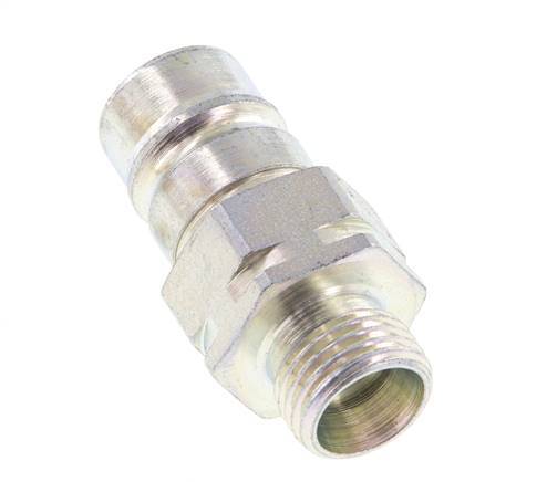 Tapón de acoplamiento hidráulico de acero DN 10 con anillo de compresión de 10 mm L (ligero). Suelen utilizarse en líneas de líquido para conectar y desconectar rápidamente conexiones seguras.