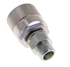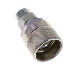 Tapón de acoplamiento hidráulico de acero DN 10 con anillo de compresión S (pesado) de 10 mm. Suelen utilizarse en líneas de líquido para conectar y desconectar rápidamente conexiones seguras.