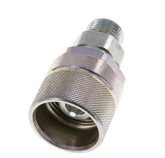 Los acoplamientos rápidos de tornillo se cierran en el enchufe y en el manguito cuando se desacoplan. La conexión del manguito de acoplamiento y del tapón de acoplamiento se realiza mediante una conexión roscada con una tuerca manual. Durante el procedimiento de acoplamiento, la cámara de la válvula se sella antes de que las válvulas se abran. Al desacoplar, las válvulas ya están cerradas, antes de que la conexión pueda ser extraída de la junta. Se puede acoplar hasta un máximo de 50 bar bajo presión.