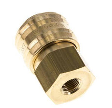 Toma de aire de latón DN 7,2 (Euro) con rosca hembra G 1/8 pulgadas. Un acoplamiento neumático se utiliza para conectar rápidamente las herramientas neumáticas a una línea de aire comprimido. El acoplamiento requiere dos partes: la toma (hembra) y el enchufe o espiga (parte macho). Cuando se desconecta, el acoplamiento se apaga automáticamente para mantener la presión de la línea.
