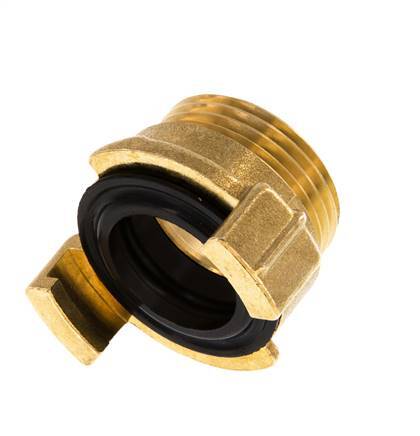 Se trata de un acoplamiento para manguera de jardín (también conocido como GEKA) con rosca macho de 1 pulgada G. El acoplamiento de la manguera de jardín tiene un diseño simétrico y sin cierre con una distancia de 40 mm entre las garras. Está fabricado en latón con una junta de NBR (caucho de nitrilo). La presión máxima de funcionamiento es de 25 bar (363 psi). El acoplamiento es adecuado para temperaturas entre 0 y 80 °C (32 a 176 °F).