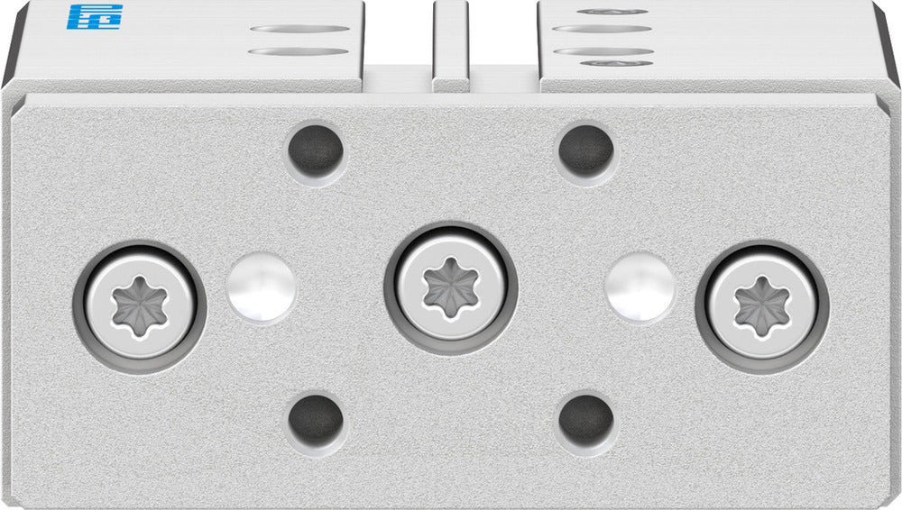 El cilindro guiado DFM combina un cilindro neumático de doble efecto con una guía de bolas recirculantes en una sola unidad compacta. Con un diámetro de pistón de 16 mm y una carrera de 30 mm, entrega 121 N de fuerza a 6 bar de presión. La guía integrada proporciona alta resistencia a los momentos y fuerzas laterales, lo que lo hace adecuado para aplicaciones de sujeción, elevación y detención precisas. La amortiguación elástica en ambos extremos asegura un funcionamiento suave, mientras que la compatibilidad con sensores de proximidad permite el monitoreo de la posición.