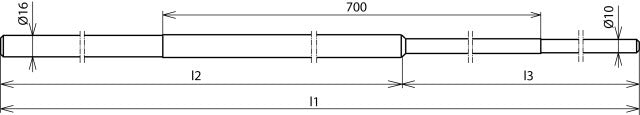 La varilla de toma de tierra cumple la norma EN 62561-2 y está diseñada para conectar conductores de bajada al sistema de toma de tierra. La varilla presenta una configuración cónica, concretamente 16 / 10, y está parcialmente aislada para mayor seguridad y eficacia. La longitud de la varilla es de aproximadamente 700 mm. Su función principal es garantizar una conexión fiable a tierra, siendo un componente crucial en un sistema de protección contra el rayo.