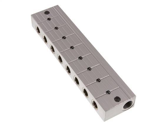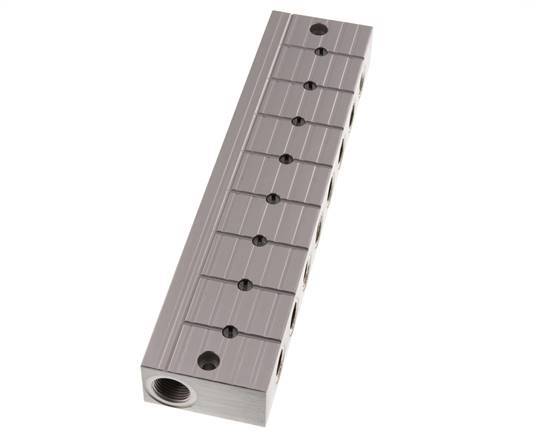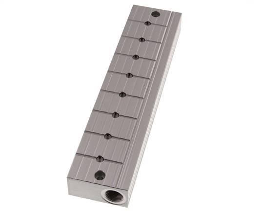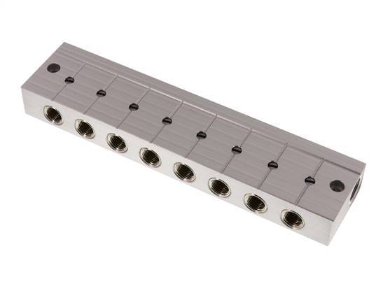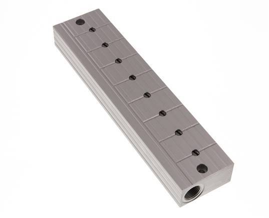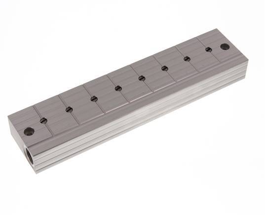 Se trata de una barra distribuidora de acero inoxidable con válvulas de bola integradas en cada salida. Tiene dos puertos de entrada y ocho de salida. Sirve como barra distribuidora y barra de parada para sistemas en los que es necesario desconectar lazos de control individuales. En cada salida, la barra tiene una válvula de bola que se puede ajustar con un destornillador. La posición de la válvula de bola se muestra en la ranura del husillo.