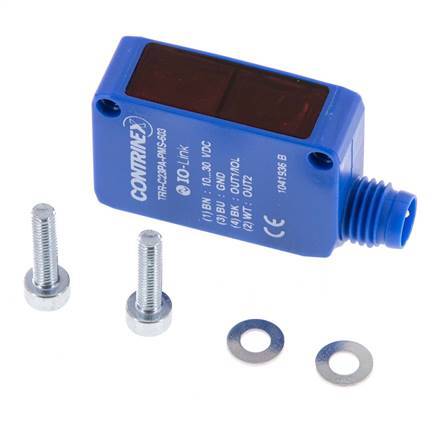 Este sensor fotoeléctrico retrorreflectante tiene el transmisor y el receptor integrados en una sola carcasa. Es adecuado para trabajar con objetos transparentes. El campo de detección va de 10 a 5000 mm y la distancia máxima de conmutación es de 4200 mm. Tiene un conector M8 de 4 clavijas. Modo de conmutación: PIN 4 - conmutación por luz / enlace IO, PIN 2 - conmutación por oscuridad. La tensión de funcionamiento 10 - 30 V DC y la salida de control 100mA (PNP). El sensor es compatible con IO-Link.