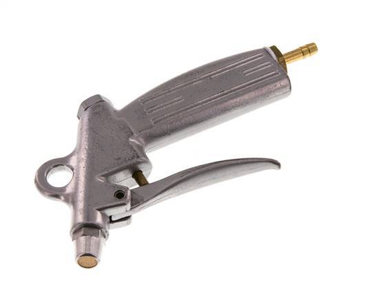Se trata de una pistola de aire comprimido de aluminio con un puerto de entrada de manguera de 6 mm. La pistola de soplado está equipada con una boquilla de aluminio con un silenciador de latón sinterizado. La boquilla se enrosca en un orificio de salida con rosca hembra M12x1,25.