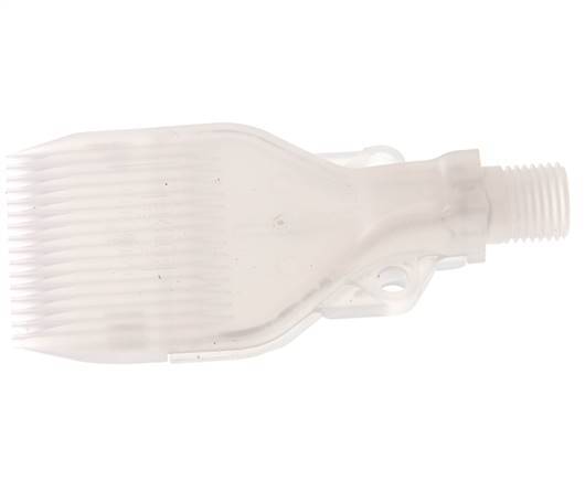 Se trata de una boquilla redonda multicanal de ABS con un puerto de entrada de aire con rosca macho M 12x1,25. Adecuado para una presión máxima de funcionamiento de hasta 6 bares y una temperatura máxima de hasta 50°C.