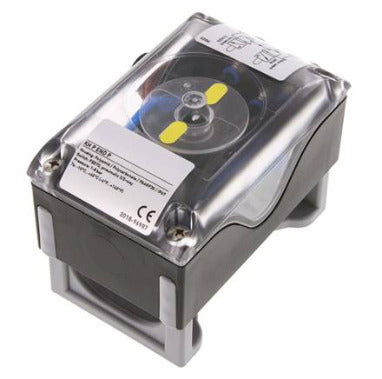 Esta caja de interruptores de límite verifica las posiciones finales de las válvulas de cuarto de vuelta accionadas neumáticamente. La caja se monta en la parte superior del actuador y detecta la posición del eje con interruptores incorporados. La carcasa, el eje selector y el puente de montaje están hechos de PA6. La cubierta está construida de policarbonato, las juntas son de EPDM y NBR, y los tornillos son de acero inoxidable 1.4301. Adecuado para temperaturas entre -10 y +60 °C (+14 y +140 °F). La caja de interruptores es adecuada para varios patrones de orificios de montaje. El interruptor controla una válvula neumática de 3/2 vías interna con un rango de presión de 1 a 8 bar (14,5-116 psi).