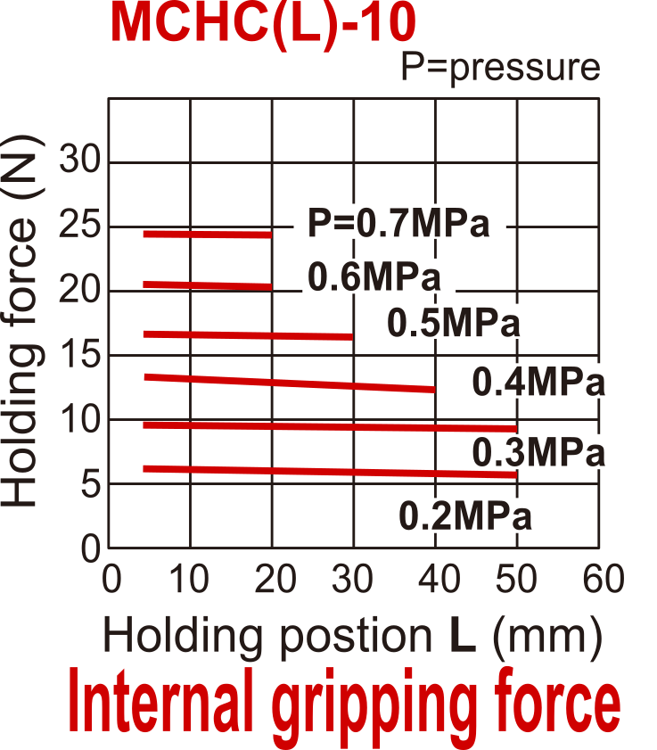 El cilindro de aire interno tiene un diámetro de 10 mm. Tiene una presión de funcionamiento de 2 a 7 bares (29 a 101,5 psi) y una frecuencia de funcionamiento máxima de 120 ciclos/min. Los puertos de aire tienen un tamaño de M3×0,5.