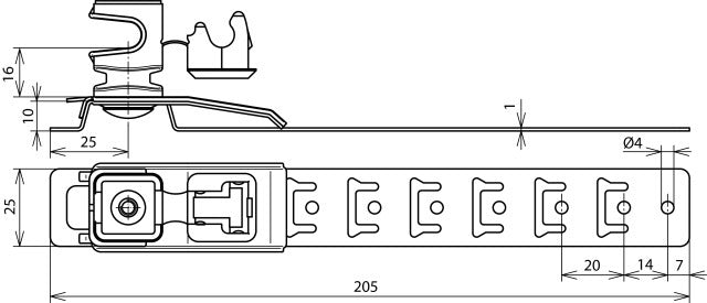El soporte de conductores para tejados UNIsnap está equipado con una pieza de sujeción adicional para asegurar los conductores de terminación aérea y de bajada en tejados, incluidos los tejados de pizarra. Fabricado en plástico resistente a la intemperie, también cuenta con estabilización UV y propiedades libres de halógenos. El soporte está fabricado en acero RVS 304 (V2A) con una longitud de soporte de 205 mm y un diámetro nominal del conductor de 8 mm. Dispone de puntos preperforados para doblar y enganchar en tejas o rastreles y tiene un tendido de conductores sueltos con un soporte de conductores DEHNsnap. El soporte está diseñado para superficies de techo inclinadas y tiene una altura de montaje de 16 mm.