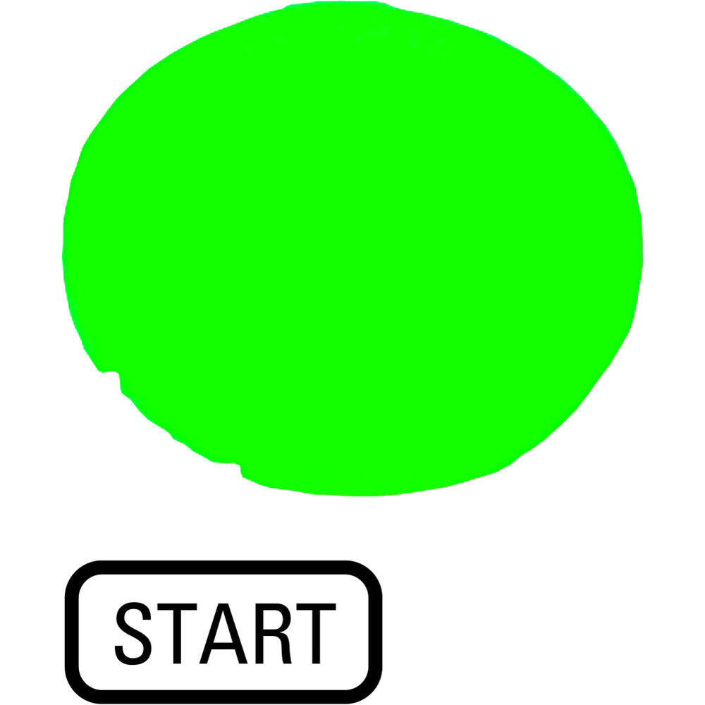 Lente de indicador empotrado para botones pulsadores iluminados de la serie M22 con inscripción START. Presenta una altura de letra de 5 mm para hasta 5 caracteres y 3 mm para texto más largo. Compatible con botones de las series M22(S)-DL-X, M22(S)-DRL-X, M22S-DGL-X, M30C-FDL-X y M30C-FDRL-X. Forma constructiva redonda con un diámetro exterior de 22 mm.