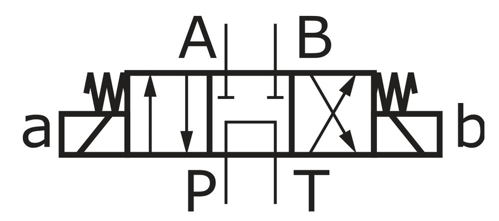 Electroválvula hidráulica de 4/3 vías de accionamiento directo Argo-Hytos con interfaz de montaje NG6 (D03) (la interfaz de montaje NG 6 está normalizada según DIN 24340-A6, ISO 4401-03, CETOP R 35 H-03 y NFPA-D03) y una bobina de 230 V AC. La válvula tiene una carcasa de hierro fundido con junta de NBR (caucho de nitrilo). En la posición inicial el flujo fluye de P a T y los puertos A y B están cerrados. La válvula es adecuada para sistemas con una presión máxima de 350 bar (5075 Psi) y un rango de temperatura de funcionamiento de -30 - 80 ° C (-22 - 176 ° F). La válvula tiene un caudal de 80 l/min y una viscosidad máxima permitida de 500 cSt. La junta de NBR (caucho de nitrilo) es adecuada para los aceites minerales. La función de anulación manual puede utilizarse para hacer funcionar el sistema durante un corte de energía. El mando manual puede funcionar hasta 5-10 bares. Dado que la válvula tiene una presión operativa máxima de 350 bar (5075 psi), puede utilizarse para aplicaciones de alta presión. La válvula tiene un grado de protección IP65.