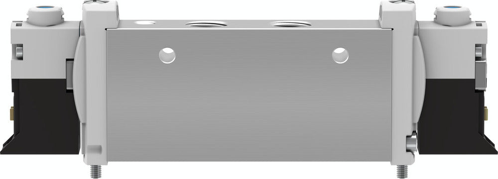 La válvula solenoide de aire VUVG es una válvula compacta 5/3 de centro cerrado con actuación eléctrica, diseñada para conexión individual. Cuenta con un puerto de trabajo neumático G1/8 y entrega un caudal nominal estándar de 620-650 l/min. Esta válvula universal combina alta intensidad de caudal con un diseño eficiente en espacio, lo que la hace adecuada tanto para aplicaciones individuales como de colector. Ideal para sistemas de automatización industrial que requieren un control neumático preciso, la válvula VUVG ofrece versatilidad a través de su tecnología de conexión mediante una caja de conexión eléctrica (E-box).