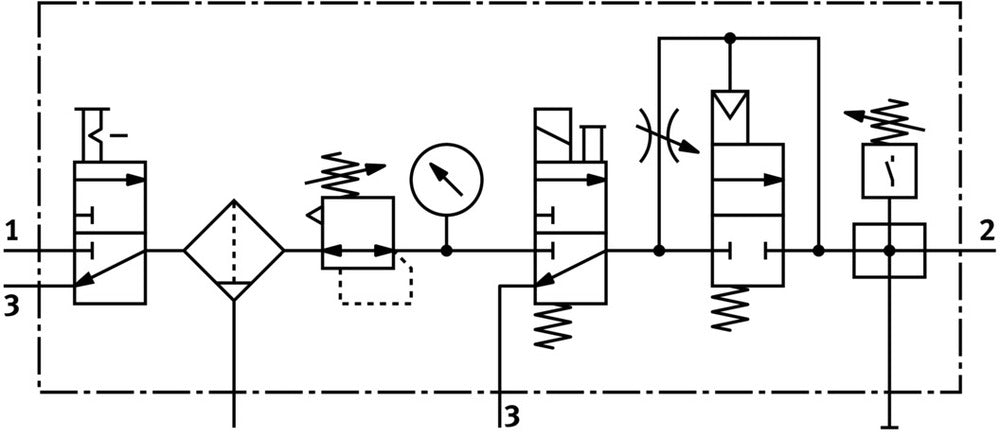 Esta unidad de mantenimiento combina componentes neumáticos esenciales en un paquete compacto. Con una conexión G1/8 y un caudal nominal estándar de 575 l/min, ofrece una gestión de aire eficiente para diversas aplicaciones industriales. La unidad cuenta con un rango de regulación de presión de 2.5 a 12 bar y un grado de filtración de 40 µm, asegurando un control preciso y una salida de aire limpia. Su diseño integrado, que incluye un filtro regulador con manómetro y otros elementos clave, simplifica los procesos de instalación y mantenimiento para usuarios técnicos que buscan una solución neumática confiable.