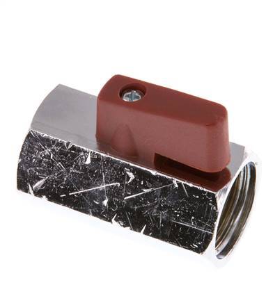 miniválvula de bola de 2 vías fabricada en latón niquelado con puertos roscados hembra de G 1/2 pulgadas. El tipo de rosca es BSPP (British Standard Pipe Parallel). Con nuestra gama de accesorios de 1/2 pulgada, la válvula puede instalarse en cualquier tubería. El diámetro nominal del orificio es de 10 mm. Las miniválvulas de bola son muy compactas. Esto los hace muy adecuados para aplicaciones con poco espacio de instalación o sistemas en los que se desea un peso reducido.