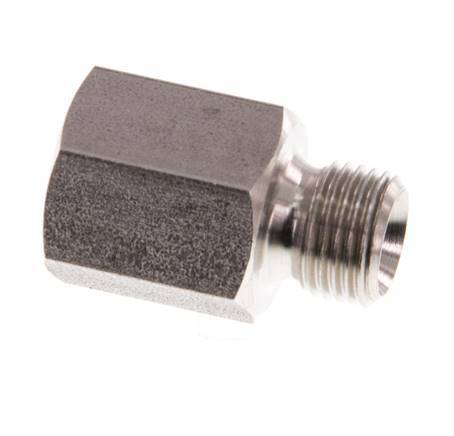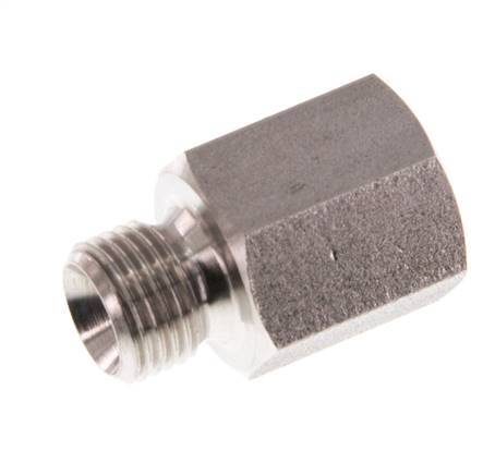 Esta boquilla reductora está diseñada con roscas macho y hembra. La conexión 1 tiene rosca hembra G 1/8 pulgadas. La conexión 2 tiene rosca macho G 1/8 pulgadas. Es un accesorio recto. Está fabricado en acero inoxidable (1.4571). Tiene una longitud total de 15 mm. A 20 °C (68 °F), puede manejar una presión máxima de 40 bar (580 psi).