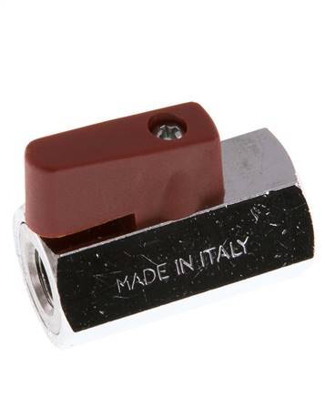 miniválvula de bola de 2 vías fabricada en latón niquelado con puertos roscados hembra de 1/8 pulgadas. El tipo de rosca es BSPP (British Standard Pipe Parallel). Con nuestra gama de accesorios de 1/8 de pulgada, la válvula puede instalarse en cualquier tubería. El diámetro nominal del orificio es de 6 mm. Las miniválvulas de bola son muy compactas. Esto los hace muy adecuados para aplicaciones con poco espacio de instalación o sistemas en los que se desea un peso reducido.