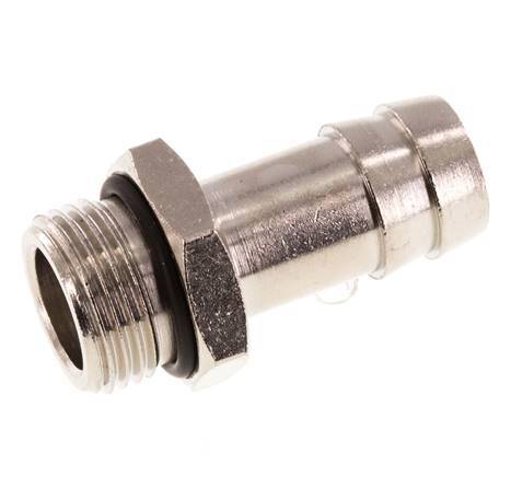 Esta conexión roscada para manguera está diseñada con una boquilla y una rosca macho con cierre. La conexión 1 tiene rosca macho G 3/8 pulgadas. La conexión 2 es un pilar de manguera, diseñado para una manguera con un diámetro interior de 13 mm. Viene con una junta para garantizar un sellado adecuado. Es un accesorio recto. Está fabricado en latón y niquelado para proteger la superficie. Tiene una junta de NBR. A 20 °C (68 °F), puede manejar una presión máxima de 30 bar (435 psi). Tiene una tuerca de 20 mm que se debe apretar con una llave.