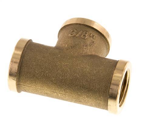 Esta pieza en T de latón está diseñada con 3 puertos roscados hembra en forma de T. La conexión 1 tiene rosca hembra G 3/8 pulgadas. La conexión 2 tiene rosca hembra G 3/8 pulgadas. La conexión 3 tiene rosca hembra G 3/8 pulgadas. Presión máxima de 16 bar (232 psi).