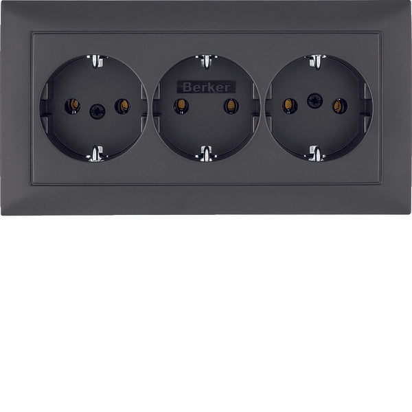 Esta toma de corriente de 3 elementos de la serie S.1 de Hager Berker está equipada con toma de tierra y una placa de cubierta completa. La carcasa completa debe montarse como dispositivo independiente y no puede incorporarse a otro marco de cubierta. Montaje con terminales de tornillo, conexión con terminales enchufables. Además, la toma de corriente Hager Berker S.1 está fabricada en termoplástico y acabada en color antracita.