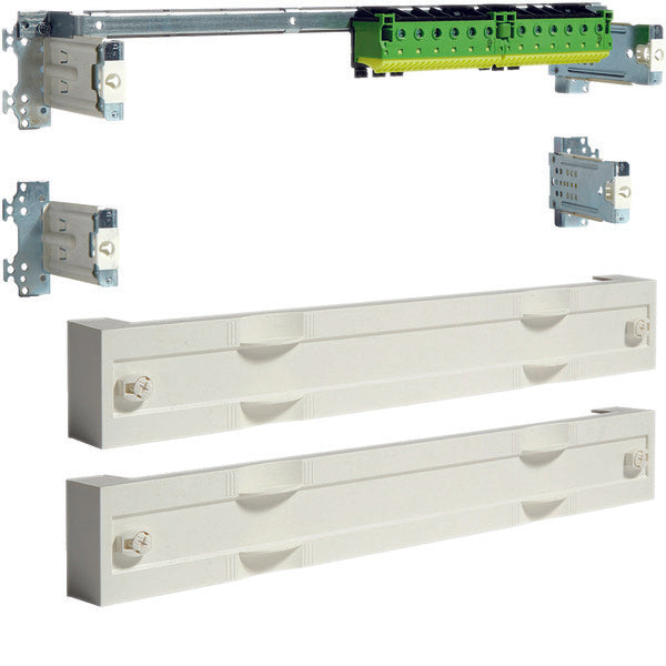 Unidad de carril de tierra tornillo 16 mm²/conexión rápida 4 mm² + unidad vacía, alto x ancho = 75 x 500 mm.