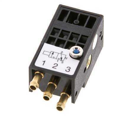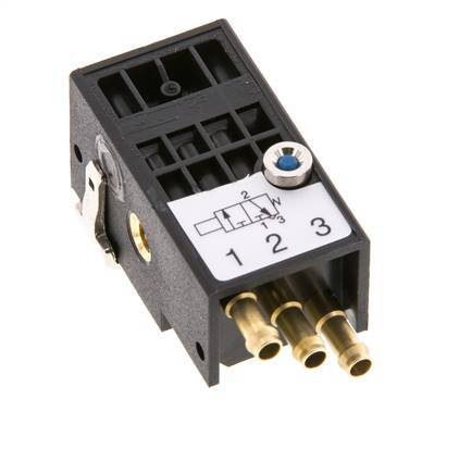 Este detector de proximidad neumático es esencialmente una válvula de tres vías normalmente cerrada que genera una señal de salida cuando detecta un campo magnético opuesto o material ferroso. Puede utilizarse para controlar circuitos neumáticos, donde es muy difícil diseñar e instalar un final de carrera. A diferencia de un interruptor de cilindro eléctrico, un interruptor de cilindro neumático es capaz de determinar la posición exacta del pistón sin tener que situarse en el extremo del mismo. Tiene tres pilares de manguera de 3 mm. La presión de funcionamiento oscila entre 2 y 6 bares.