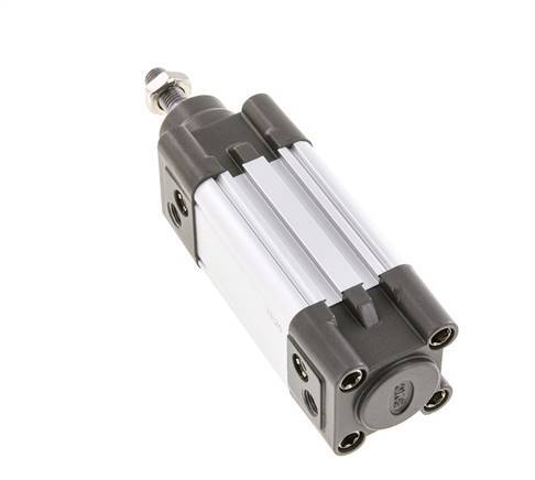 Este cilindro neumático es de doble efecto, lo que significa que necesita presión de aire para extender y retraer el vástago. El cilindro cumple la norma ISO 15552 (sustituye a las normas VDMA 24562 e ISO 6431), que es una norma mundialmente aceptada y ampliamente utilizada. La ventaja es que permite la intercambiabilidad mundial con otras grandes marcas como Festo, SMC o Norgren. El diámetro interior es de 32 mm y la carrera de 25 mm. Este cilindro tiene una presión de funcionamiento de 1 a 10 bar (14,5 a 145,04 psi). El vástago tiene una rosca M10 x 1,25 en el extremo. El pistón contiene un elemento magnético. Esto permite una retroalimentación precisa de la posición de la varilla mediante el montaje de (uno o más) sensores magnéticos, tales como sensores reed o hall. La amortiguación en ambos extremos de la carrera es ajustable mediante tornillos de ajuste. El cilindro tiene dos puertos G 1/8 pulgadas para el enrutamiento de aire. El cilindro puede montarse rígido o flexible con una amplia gama de opciones de montaje, como rótulas de vástago (ISO 8139) o rótulas de horquilla de vástago. La culata y el pie del cilindro son de aluminio, el tubo del cilindro es de aluminio anodizado y el vástago del pistón es de acero cromado. Los cilindros EMC ISO 15552 son compatibles con las siguientes series de productos: Asco G453, Aventics PRA, Festo DSBC, IMI Norgren PRA, Parker P1D, Parker P1F y la serie SMC CP96.