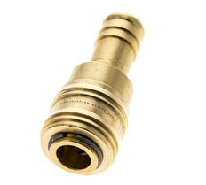 Toma de aire de latón DN 5,5 (Orion) con una conexión de pilar de manguera de 13 mm. Un acoplamiento neumático se utiliza para conectar rápidamente las herramientas neumáticas a una línea de aire comprimido. El acoplamiento requiere dos partes: la toma (hembra) y el enchufe o espiga (parte macho). Cuando se desconecta, el acoplamiento se apaga automáticamente para mantener la presión de la línea.