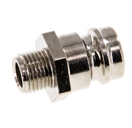 Tapón de acoplamiento de molde DN 9 de latón con rosca macho G 1/8 pulgadas. Suelen utilizarse en líneas de líquido para conectar y desconectar rápidamente conexiones seguras.