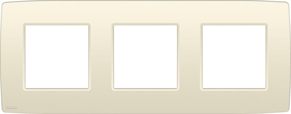 Placa de cubierta triple con distancia entre ejes de 71 mm de la serie Niko Original. Placa de cubierta de color de acabado: Crema original. (RAL1013).