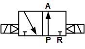 Una válvula de 3/2 vías tiene tres puertos y dos estados. Esta válvula puede utilizarse, por ejemplo, para controlar un cilindro de simple efecto. Un puerto de la válvula solenoide se conecta al cilindro, este puerto se utiliza tanto para el llenado como para la ventilación del cilindro. Por lo tanto, la válvula tiene un puerto para el suministro de aire (puerto P), un puerto para ventilar (puerto R) y un puerto para la conexión con el cilindro (puerto A).