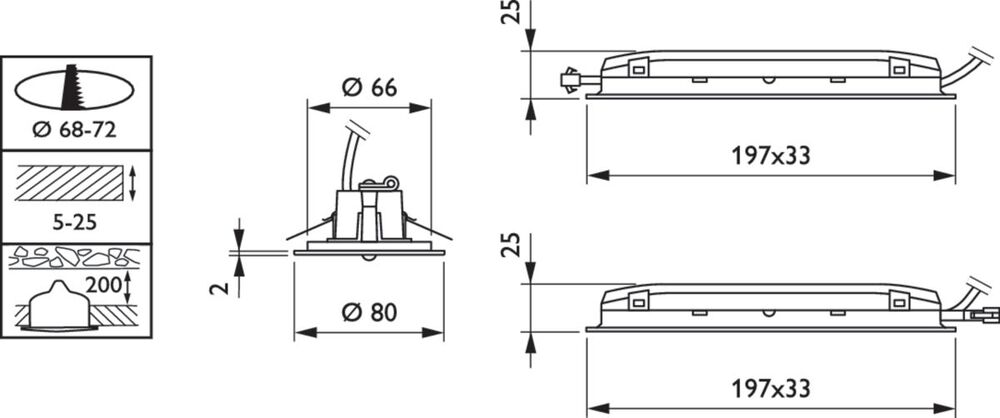Philips Emergency Lighting Downlight EM120B Downlight downlight/spotlight/light, subcategoría downlight, flujo luminoso 185lm, flujo luminoso efectivo según IEC 185lm, temperatura 5000K, color de la luz blanco, potencia del sistema 4W, carcasa blanca, adecuado para montaje empotrado, diámetro de empotrado 68mm.