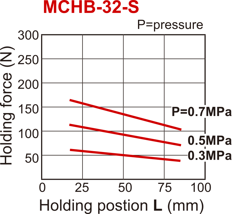 El cilindro de aire interno tiene un diámetro de 32 mm. Tiene una presión de funcionamiento de 2 a 7 bares (29 a 101,5 psi) y una frecuencia de funcionamiento máxima de 180 ciclos/min. Los puertos de aire tienen un tamaño de M5×0,8.