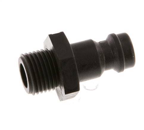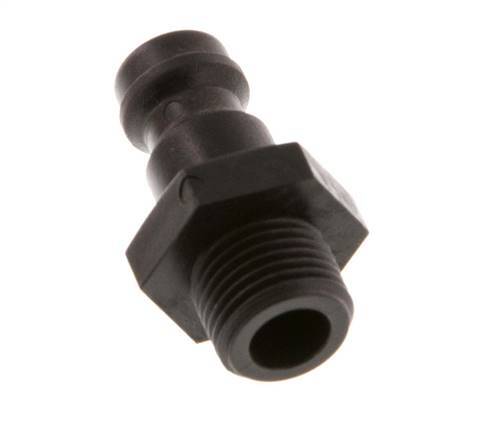 Tapón de acoplamiento de polioximetileno (POM) DN 5 con rosca macho G 1/8 pulgadas. Un acoplamiento neumático se utiliza para conectar rápidamente las herramientas neumáticas a una línea de aire comprimido.