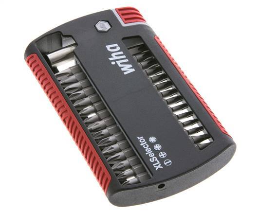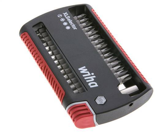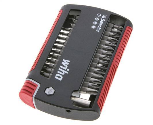 Este es un juego de brocas Wiha de 31 piezas de alta calidad. El juego se compone de un portapuntas magnético, 3 puntas ranuradas en tamaños: 4.5, 5,5 y 6,5 mm, 7 puntas de cruz Phillips en tamaños: 2xPH1, 4xPH2 y PH3, 8 puntas Pozidriv en cruz en tamaños: 2xPZ1, 5xPZ2 y PZ3, y 12 puntas de tornillo TORX en tamaños: 2xTX10, 2xTX15, 2xTX20, 3xTX25, 2xTX30 y TX40.