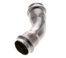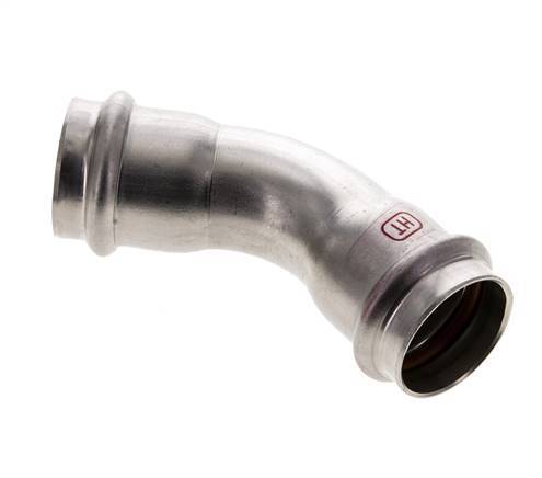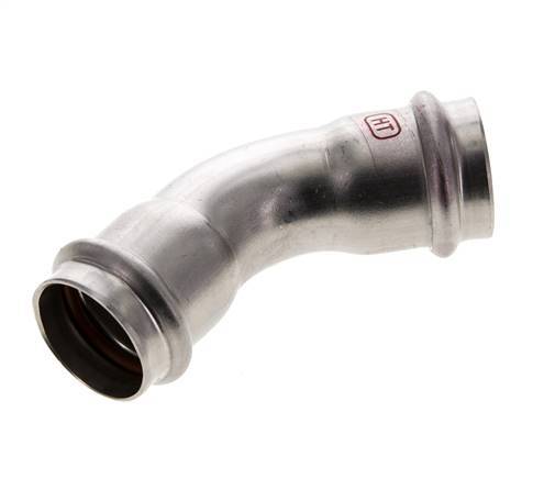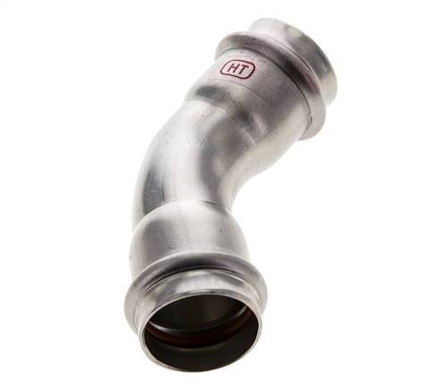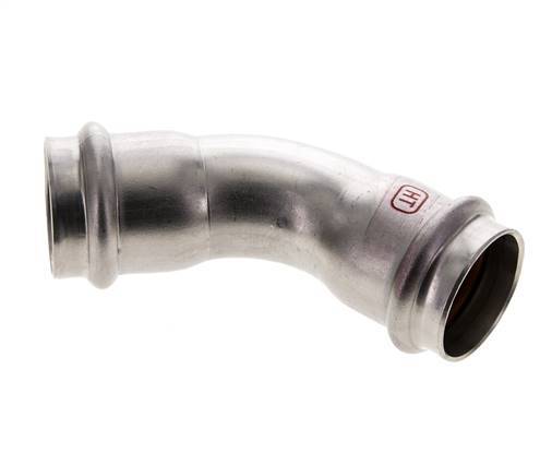 Se trata de un racor en codo de 45 grados fabricado en acero inoxidable 1.4404. El racor tiene dos puertos hembra de prensado. Las conexiones 1 y 2 están diseñadas para un tubo con un diámetro exterior de 28 mm. El racor tiene una junta de estanqueidad de FKM. La presión máxima es de 25 bar (363 psi). El racor es adecuado para temperaturas de -20 a 200 °C (-4 a 392 °F). Temporalmente, la temperatura máxima puede ser de +280 °C (536 °F). La longitud del accesorio es de 53 mm.