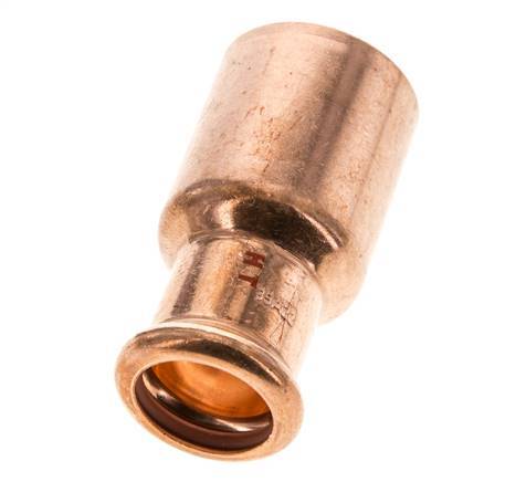 Se trata de un racor reductor fabricado en aleación de cobre. El racor tiene un orificio de prensado macho (FTG) y un orificio de prensado hembra. La conexión 1 está diseñada para un tubo con un diámetro exterior de 22 mm y la conexión 2 tiene una conexión macho a presión con un diámetro exterior de 35 mm. El racor tiene una junta de estanqueidad de FKM. La presión máxima es de 16 bar (232 psi). El racor es adecuado para temperaturas de -20 a 200 °C (-4 a 392 °F). Temporalmente, la temperatura máxima puede ser de +280 °C (536 °F). La longitud del accesorio es de 68 mm.