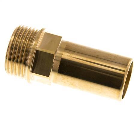 Se trata de un accesorio enchufable. Dispone de puertos de conexión para conectar un racor a una manguera, una tubería u otro componente neumático. La conexión 1 es un enchufe de 28 mm, también llamado conexión enchufable, y la conexión 2 tiene rosca macho G de 1 pulgada. La conexión de rosca macho tiene una junta tórica. El cuerpo es de latón. Los puertos de conexión son de latón. El rango de presión de funcionamiento es de -0,95 a 10 bar (-14 a 145 psi), por lo que es adecuado para los vacíos. El racor es apto para temperaturas de -20 a 70 °C (-4 a 158 °F).