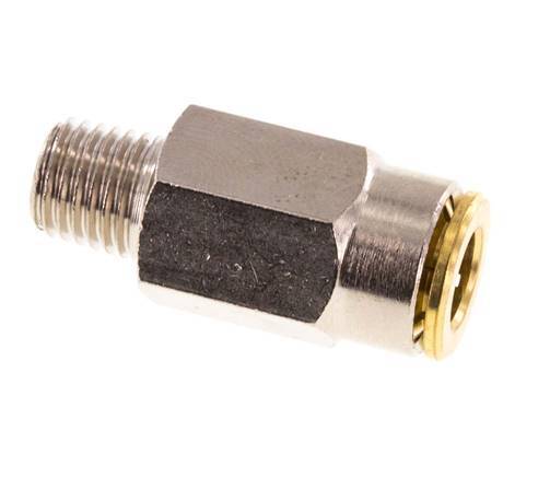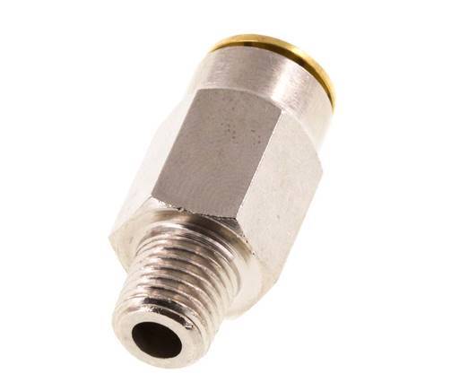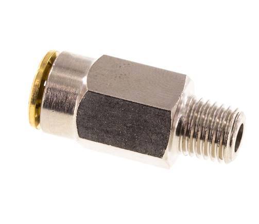 Se trata de un racor recto de 2 conexiones. Los racores rápidos son ideales para crear conexiones rápidas y fiables para las mangueras neumáticas. La conexión 1 es un puerto de 6 mm. La conexión 2 tiene rosca macho cónica M 8x1. El cuerpo es de latón. Los puertos de conexión son de latón niquelado. El material de la junta es NBR. La presión máxima es de 250 bar (3625 psi). El racor es adecuado para temperaturas de -20 a 70 °C (-4 a 158 °F).