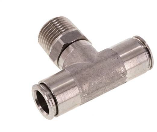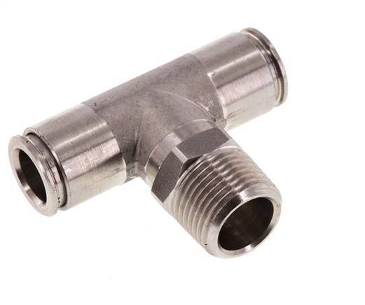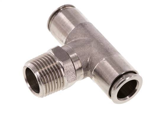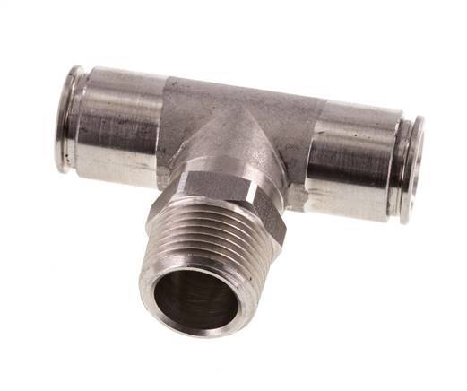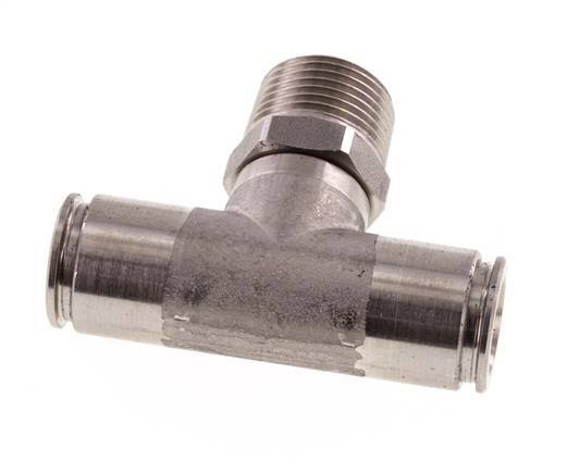 Se trata de un racor en T en línea de 3 conexiones. Los racores rápidos son ideales para crear conexiones rápidas y fiables para las mangueras neumáticas. Las conexiones 1 y 2 son puertos de 10 mm a presión y la conexión 3 tiene roscas macho de 3/8 pulgadas. El cuerpo es de acero inoxidable. Los puertos de conexión son de acero inoxidable. El material de la junta es FKM. El rango de presión de funcionamiento es de -0,95 a 15 bar (-14 a 218 psi), por lo que es adecuado para los vacíos. El racor es apto para temperaturas de -20 a 150 °C (-4 a 302 °F).