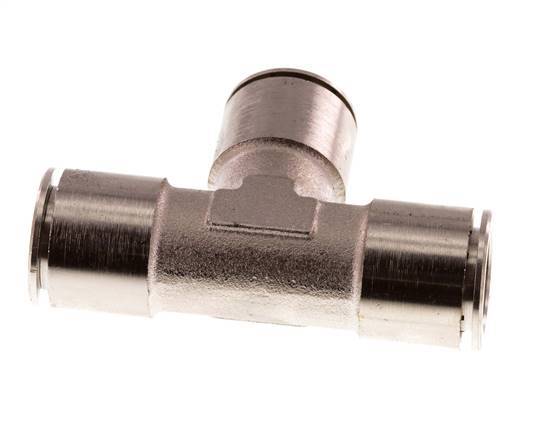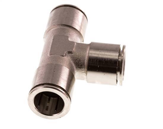 Se trata de un racor en T de 3 conexiones. Los racores rápidos son ideales para crear conexiones rápidas y fiables para las mangueras neumáticas. Todas las conexiones tienen un orificio de entrada de 16 mm. El cuerpo es de latón. Los puertos de conexión son de latón niquelado. El material de la junta es FKM. El rango de presión de funcionamiento es de -0,98 a 16 bar (-14 a 232 psi), por lo que es adecuado para los vacíos. El racor es adecuado para temperaturas de -20 a 150 °C (-4 a 302 °F).