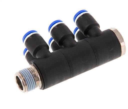 Racor rápido de 6 vías de 8 mm x R3/8'' con rosca macho Latón/PA 66 NBR Giratorio